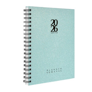 Agenda Planner Semanal 2026 Solid Glitter Cores Turquesa