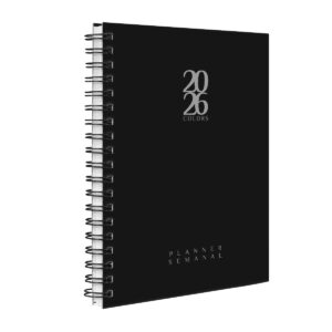 Agenda Planner Semanal 2026 Solid Colors Preto Prata