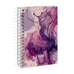 Agenda Mini 2026 Lírico Abstrato Aquarela Rosa e Roxo