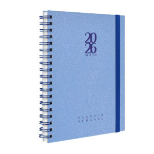 Agenda Planner Semanal Plus 2026 Solid Glitter Cores Azul Claro