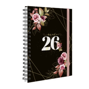 Agenda Planner Semanal Plus 2026 Floral Flores Preto E Rosa