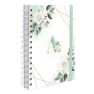 Agenda Plus 2026 Monograma Floral Verde E Branco Letra