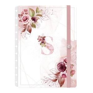 Capa e Contracapa Iscool Disc Monograma Floral Branco E Rosa Letra S