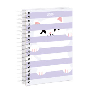 Agenda MiniAgenda Mini 2026 Listras Lilás Gato Branco