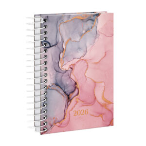 Agenda Diária Plus 2026 Mármore Rosa Primavera