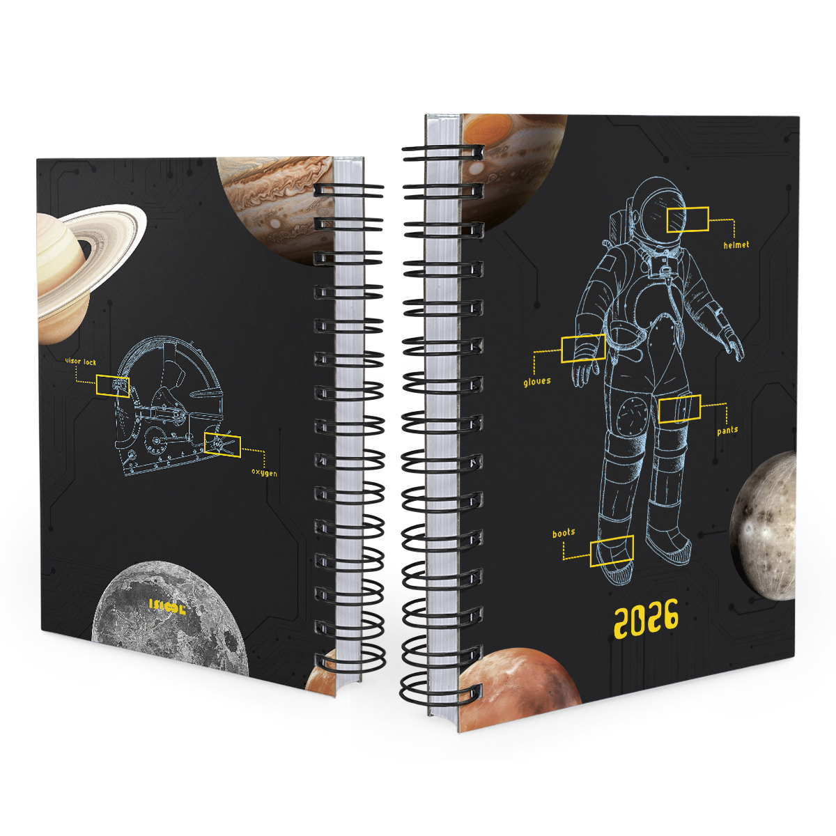 A cada mês, você pode contar com uma página de planejamento mensal, facilitando a visualização de suas principais anotações. Além disso, cada página possui indicações de feriados, estações do ano, calendário lunar, número da semana, frases inspiradoras e um calendário linear do mês no rodapé.