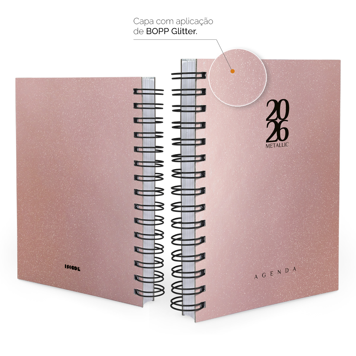 Agenda 2026 Solid Metallic Glitter Rose Gold