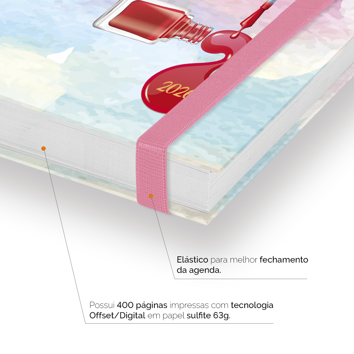 Elástico para fechamento da capa da agenda.