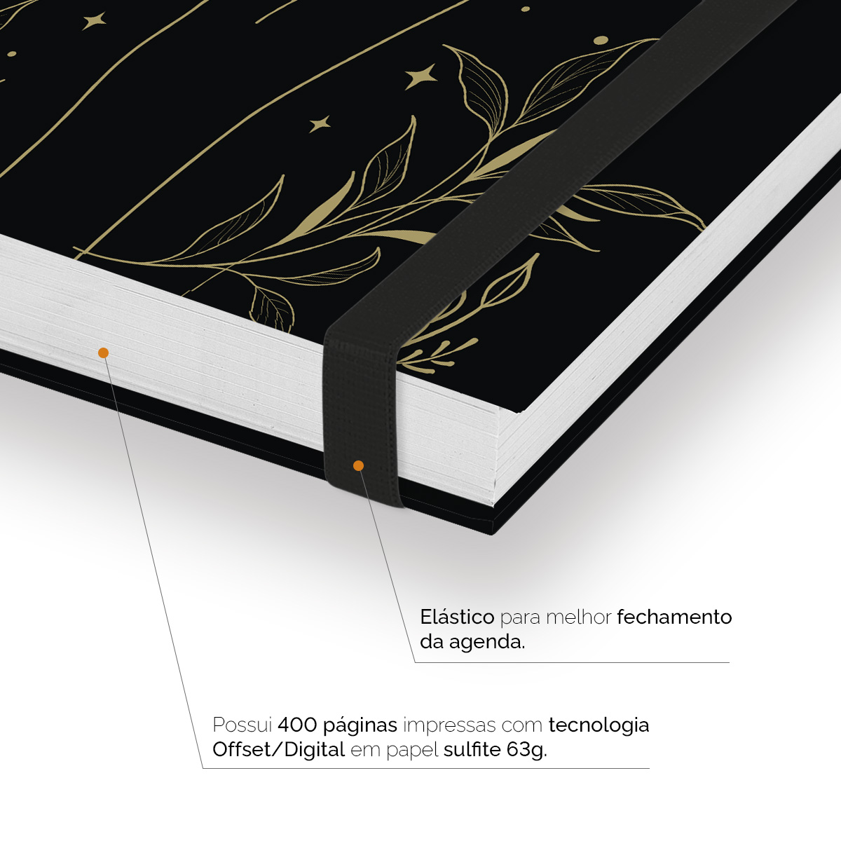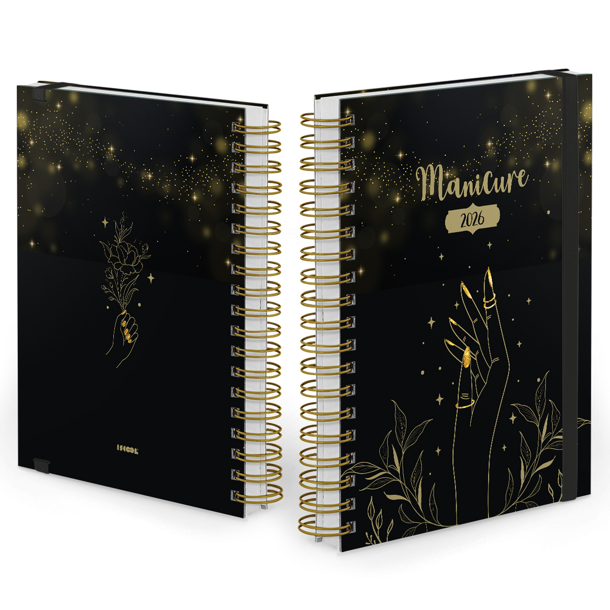 Agenda Comercial Plus 2026 Manicure Leaf Sublime Preto