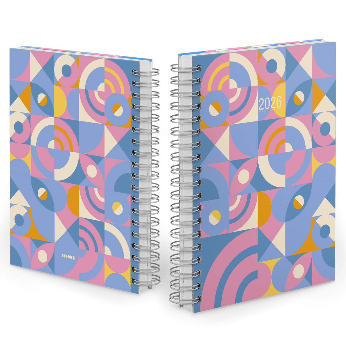 Agenda Diária 2026 Bauhaus Azul e Rosa