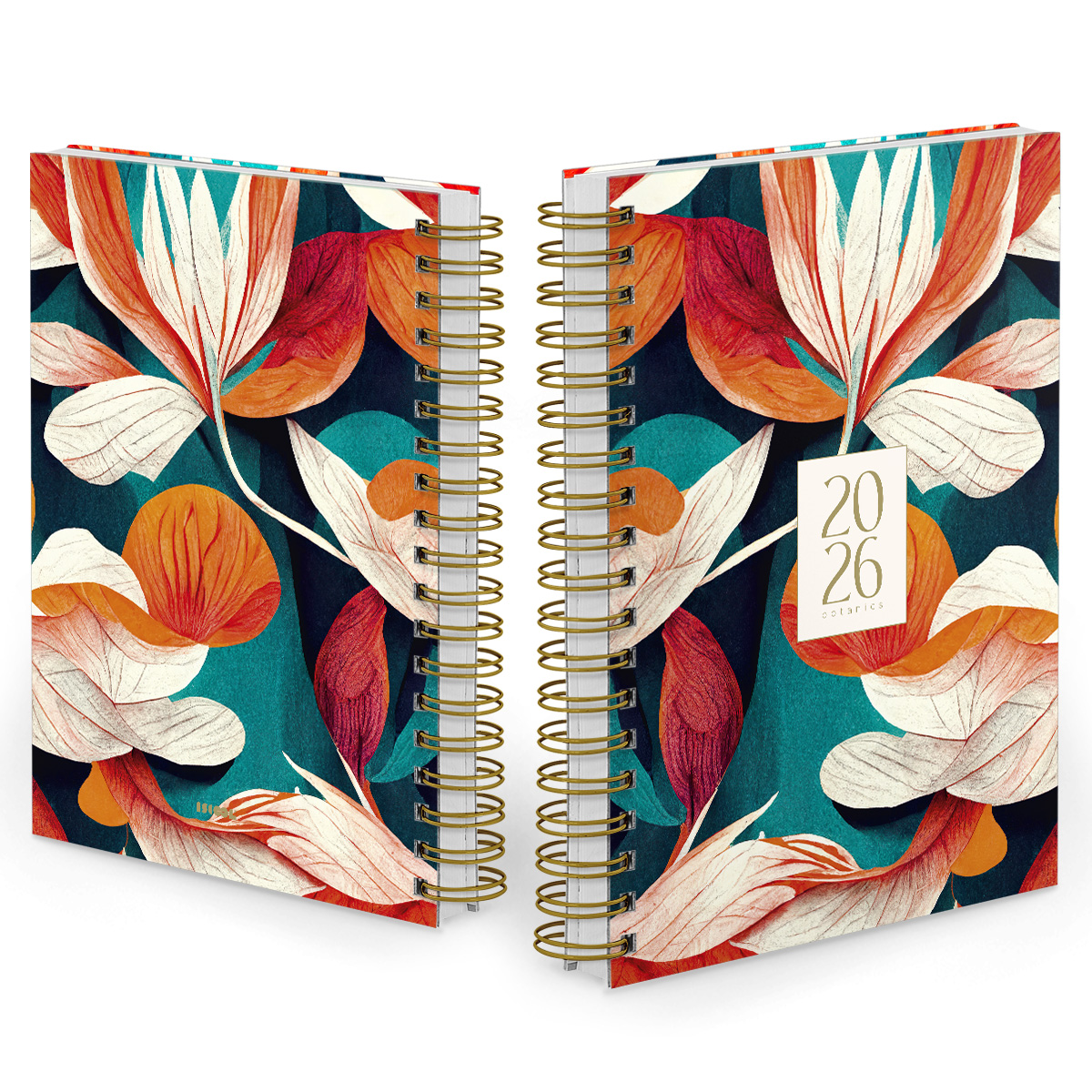 Em cada mês você pode contar com uma página de planejamento mensal, facilitando visualmente as suas principais anotações. Além disso, cada página possui indicação de feriados, das estações do ano, calendário lunar, indicador do número da semana, frases inspiradoras e um calendário linear do mês no rodapé.