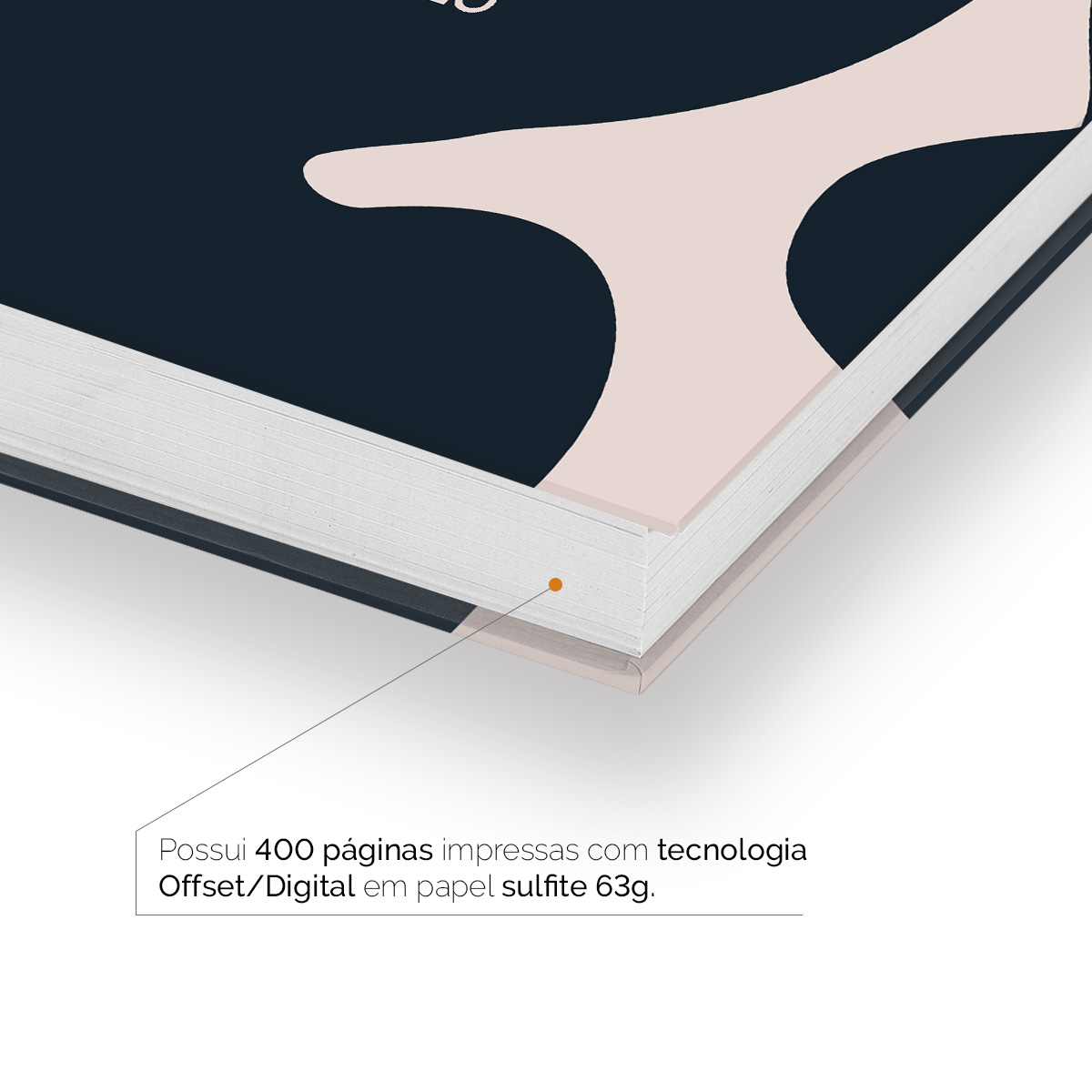 Páginas internas (miolo) impressas em papel sulfite (offset) 63g branco no tamanho 18 cm de largura por 24,5 cm de comprimento.