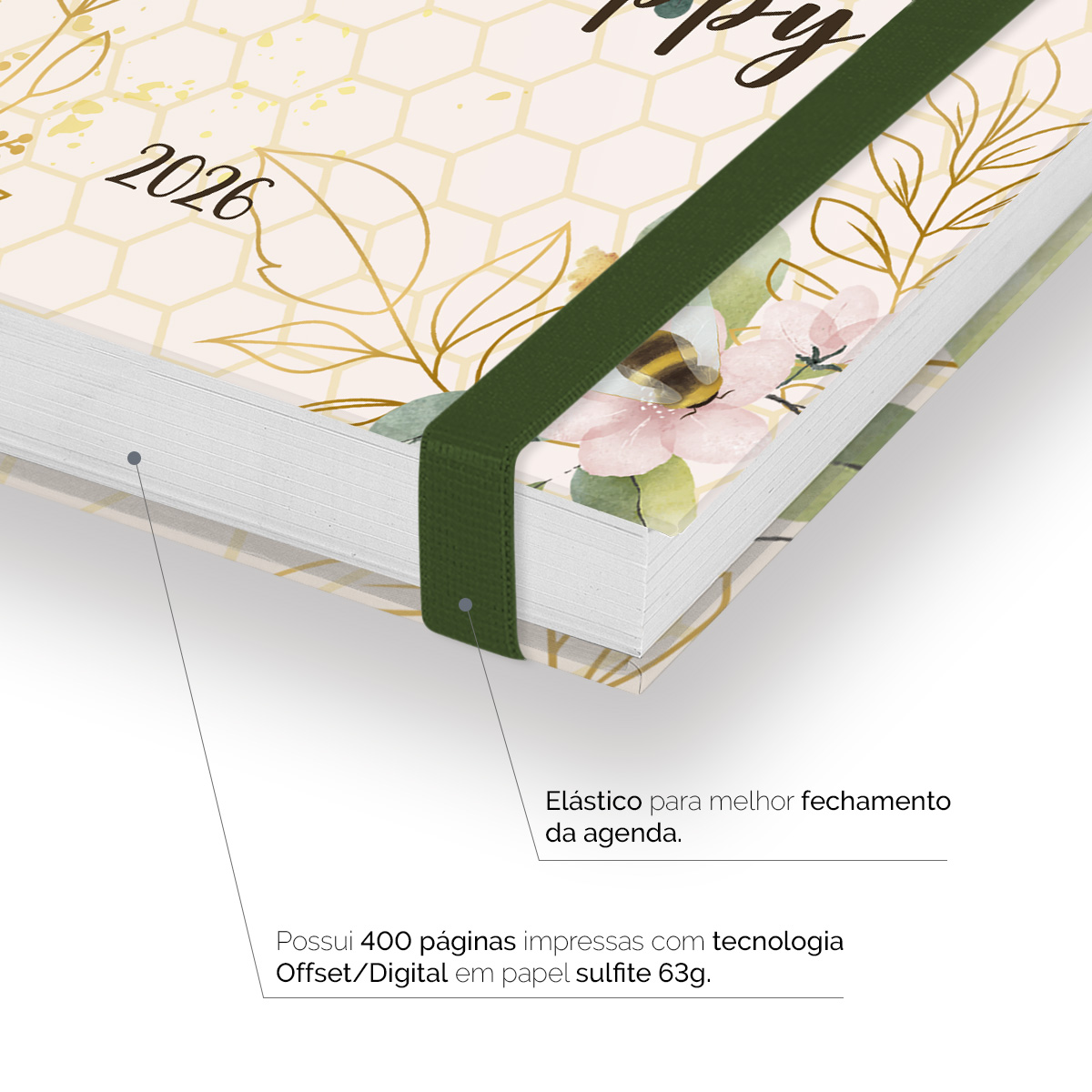 Em cada mês você pode contar com uma página de planejamento mensal, facilitando visualmente as suas principais anotações. Além disso, cada página possui indicação de feriados, das estações do ano, calendário lunar, indicador do número da semana, frases inspiradoras e um calendário linear do mês no rodapé.