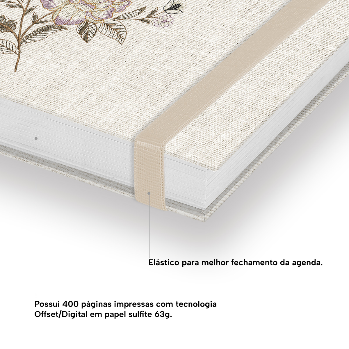 Em cada mês você pode contar com uma página de planejamento mensal, facilitando visualmente as suas principais anotações. Além disso, cada página possui indicação de feriados, das estações do ano, calendário lunar, indicador do número da semana, frases inspiradoras e um calendário linear do mês no rodapé.