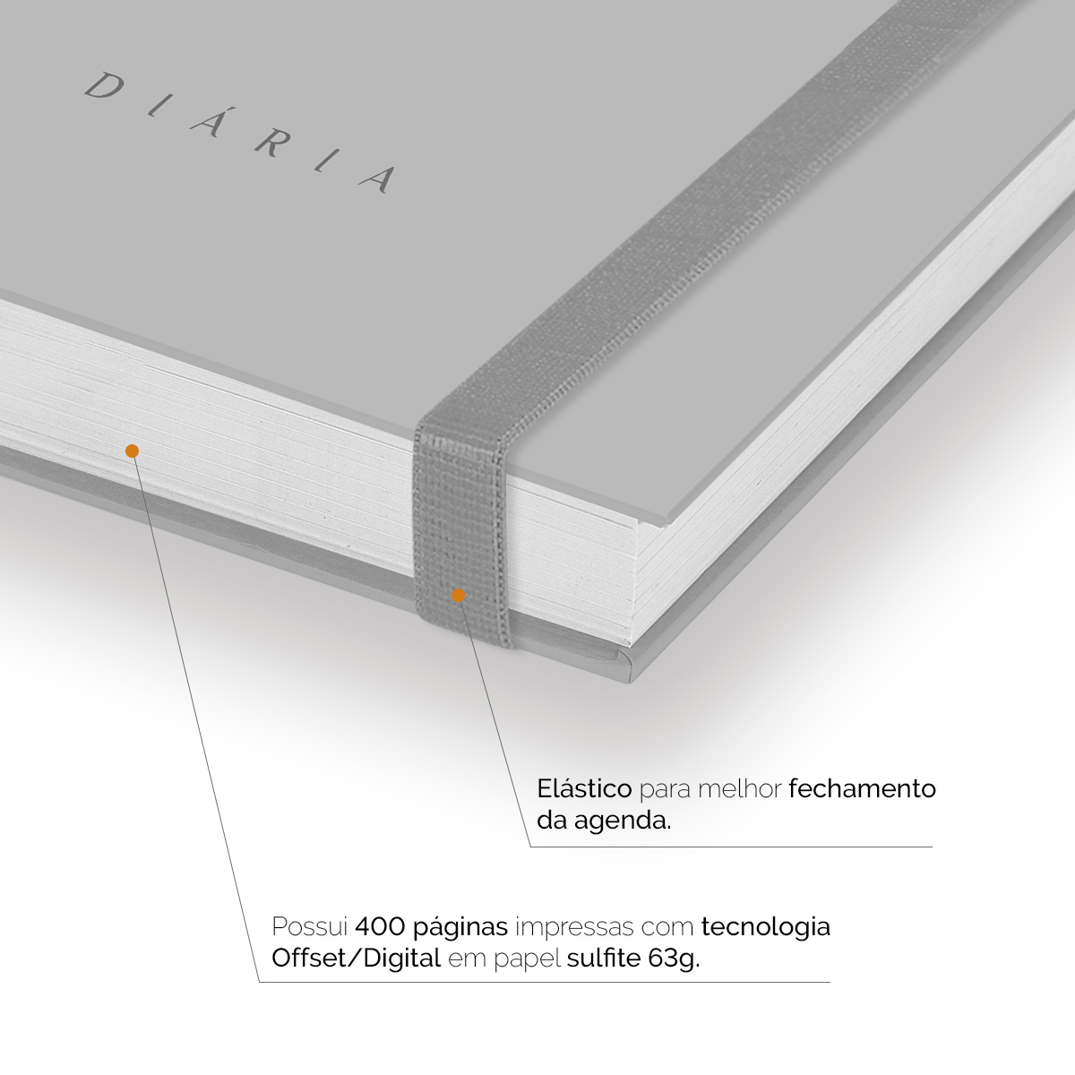 Elástico para fechamento da capa da agenda.