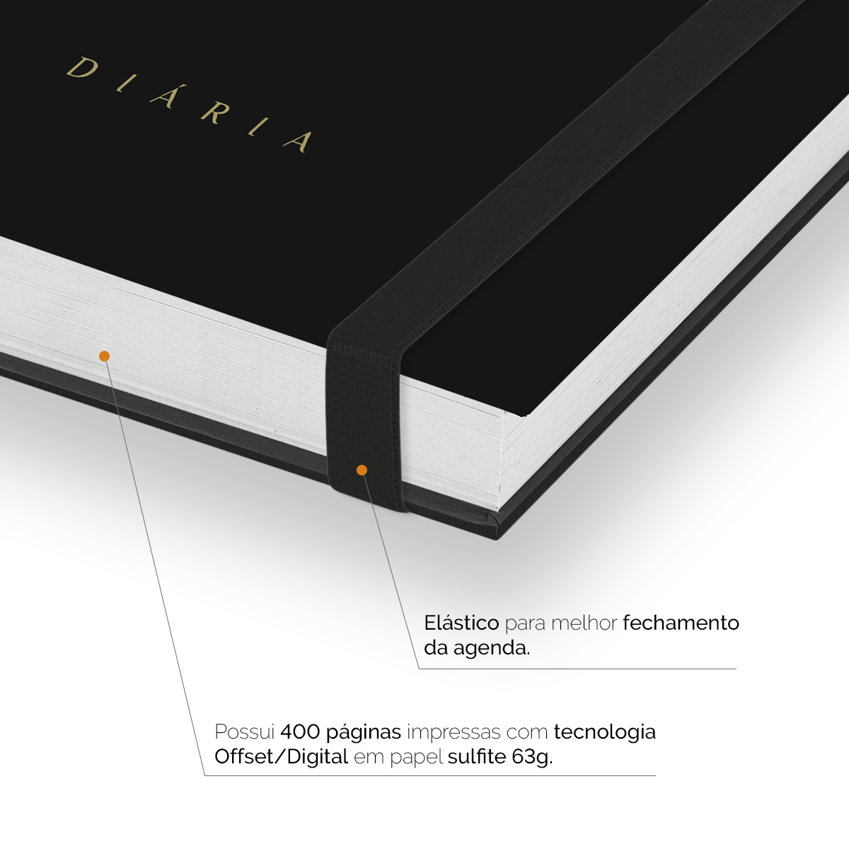 Agenda Diária Plus 2026 Solid Colors Preto Ouro