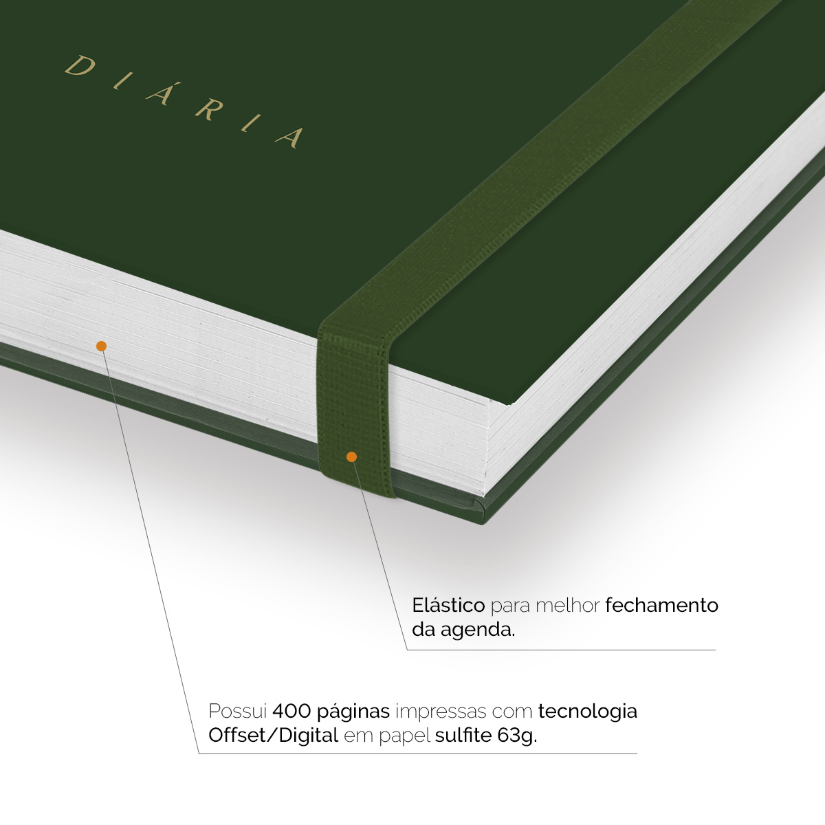 Elástico para fechamento da capa da agenda.