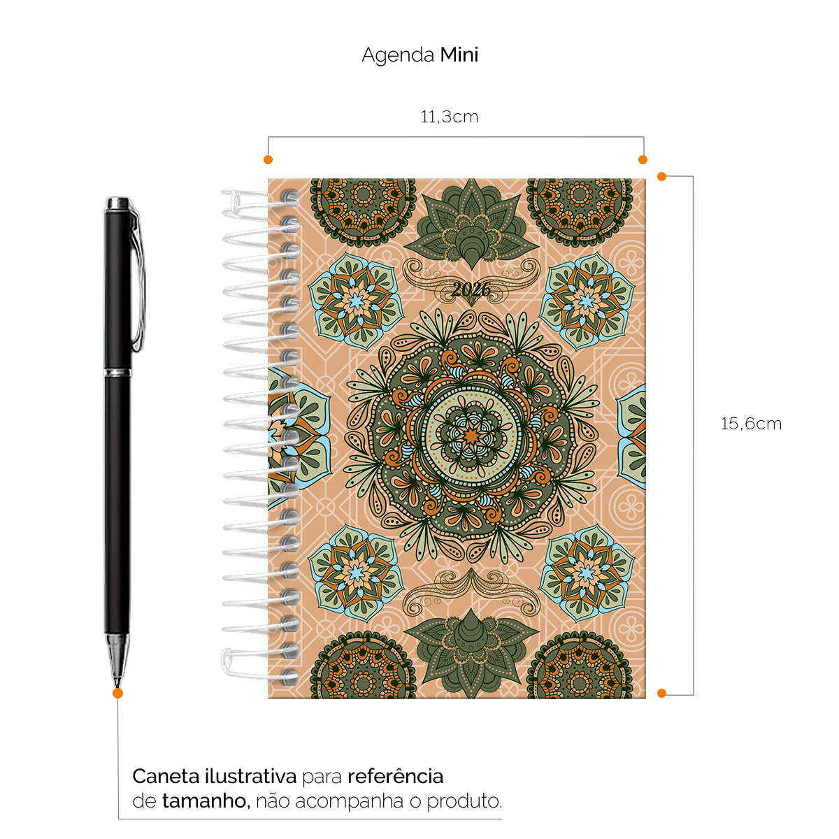 Agenda Mini 2026 Boho Mandala Verde e Nude