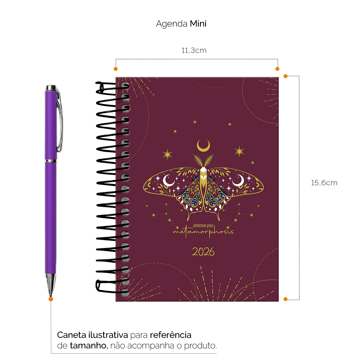 Agenda Mini 2026 Cosmos Borboleta Marsala