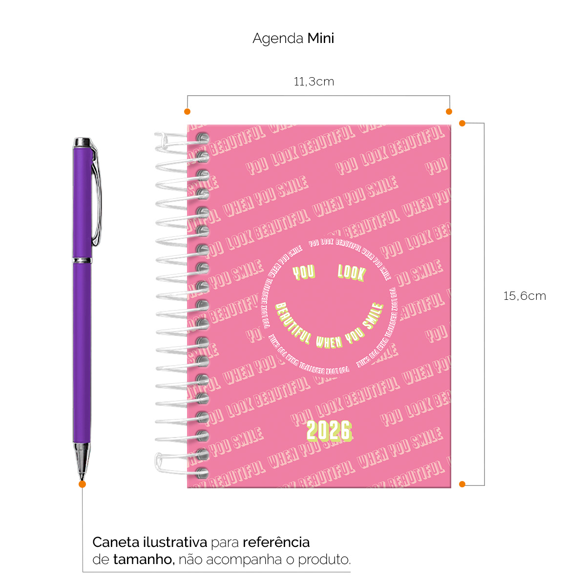 Agenda Mini 2026 Euforia You Look Beautiful When You Smile Rosa