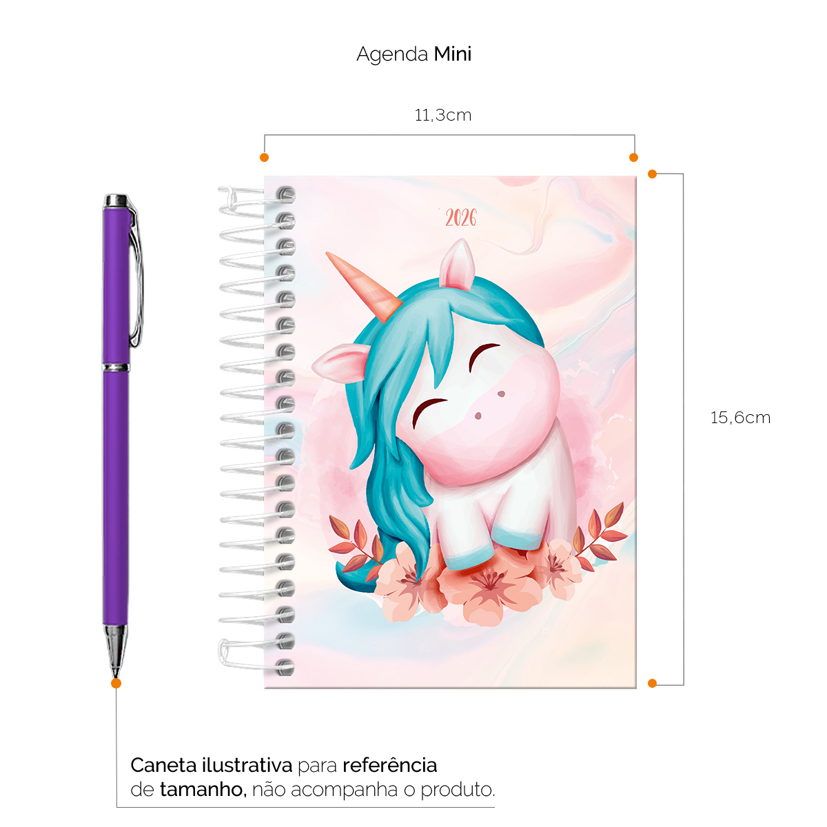 Agenda Mini 2026 Fantasy Unicórnio Fofo