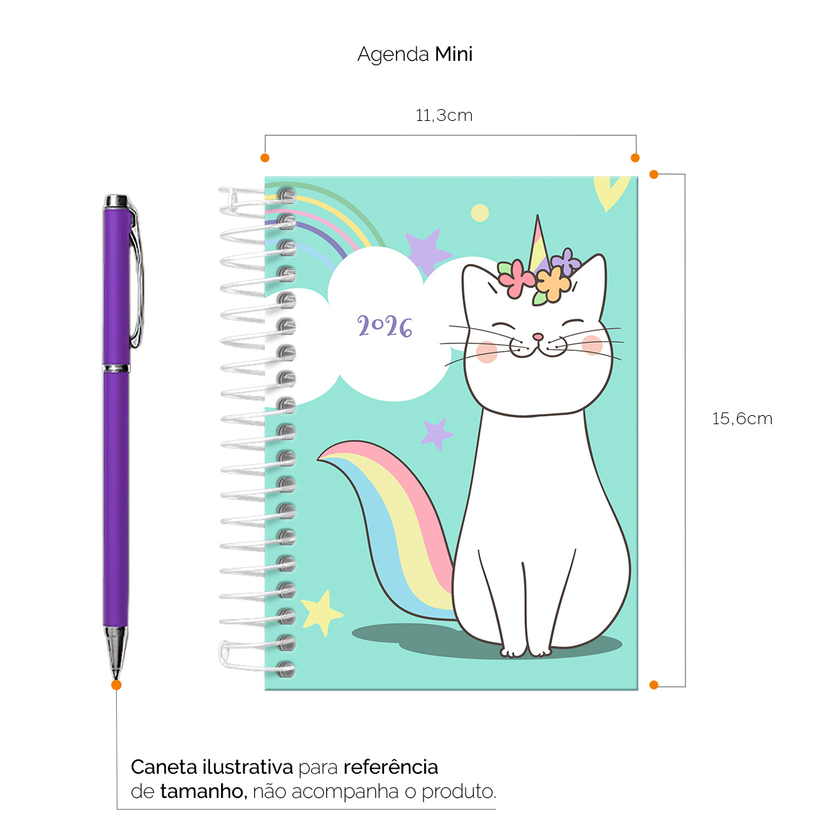 Agenda Mini 2026 Fantasy Unicórnio Gato