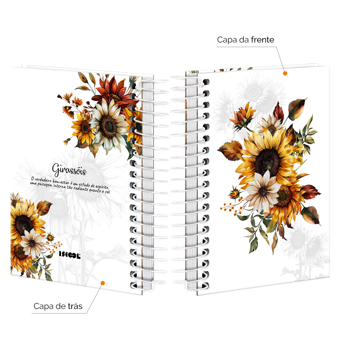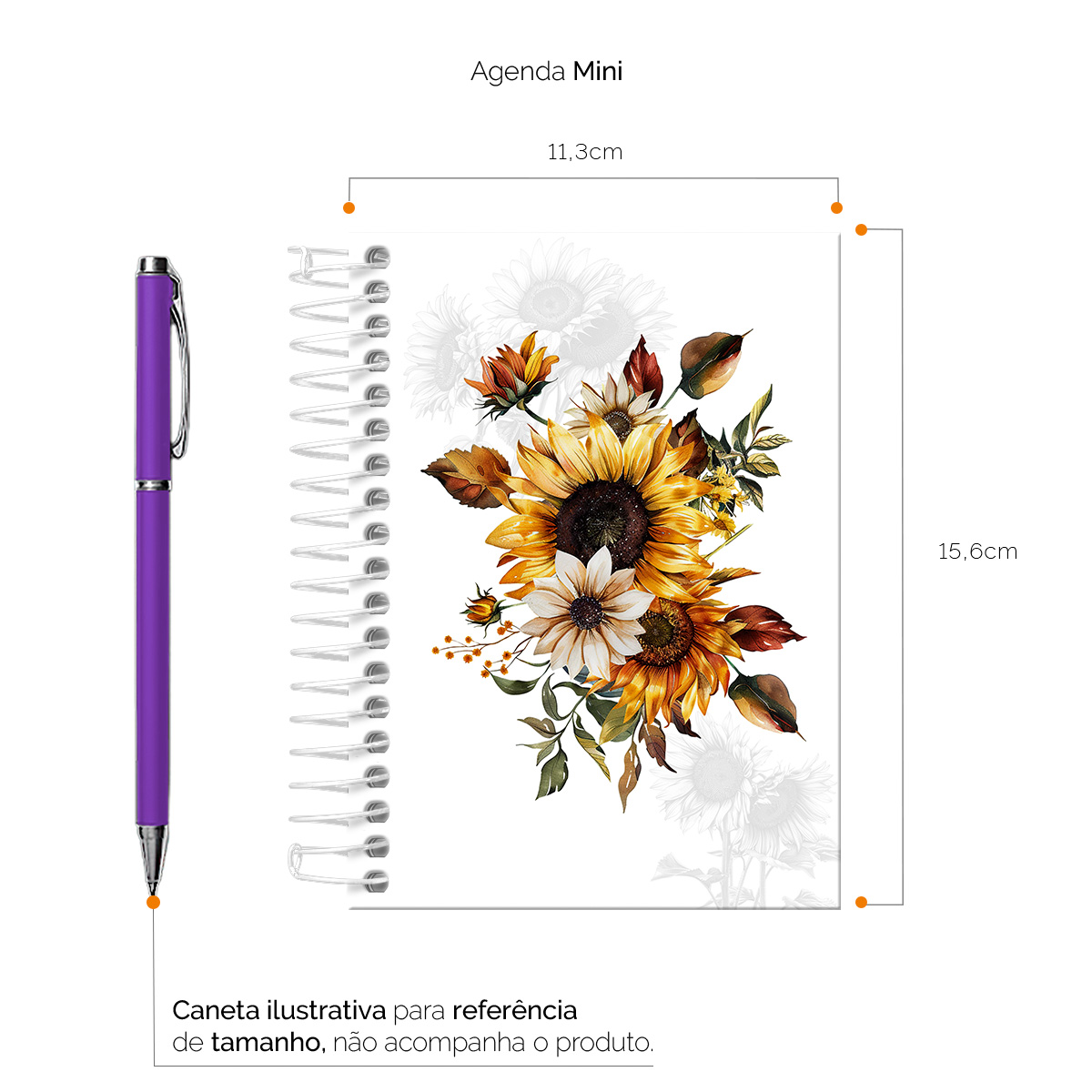Agenda Mini 2026 Floriografia Girassóis Branco