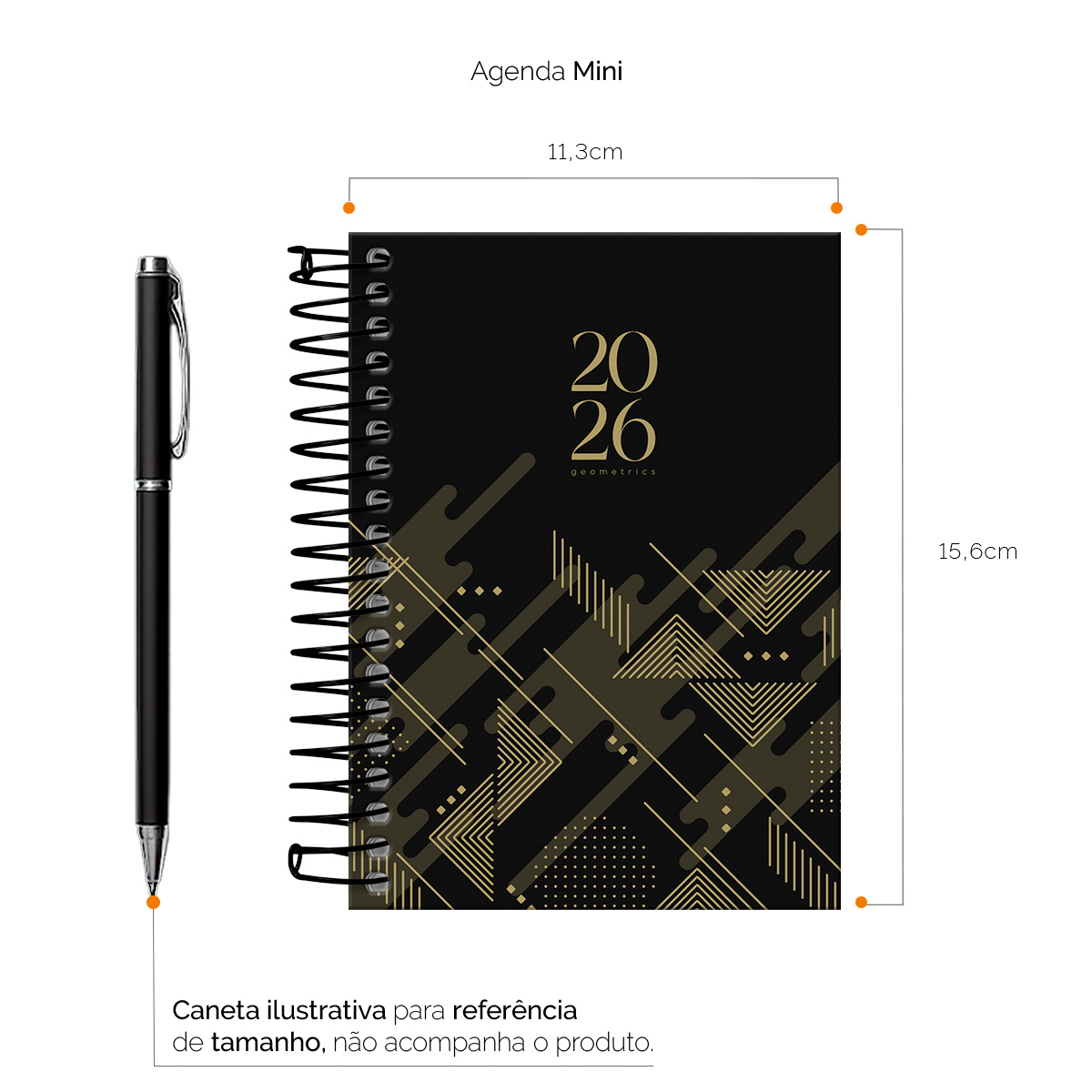 Agenda Mini 2026 Geometrics Triângulos Preto