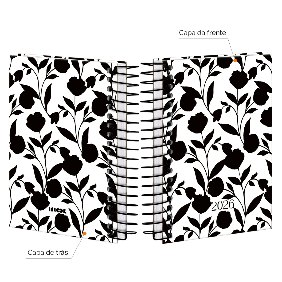 Encadernada com espiral de arame revestido.