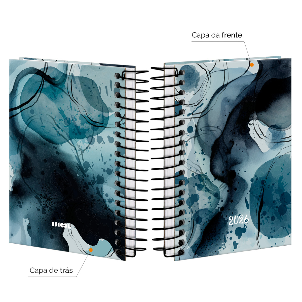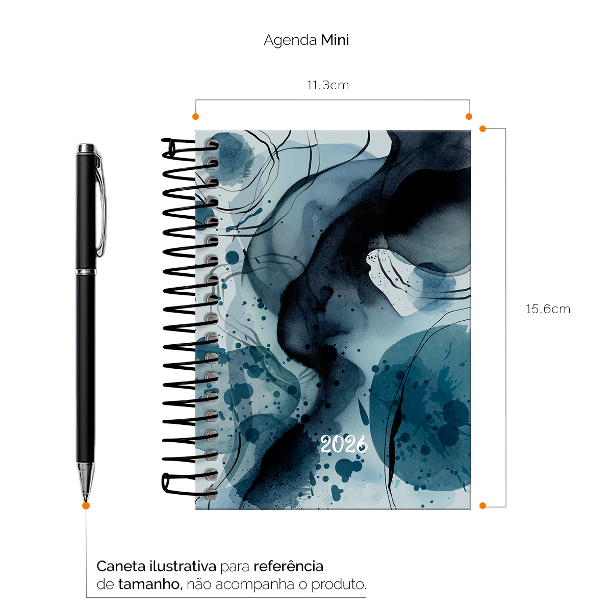 Agenda Mini 2026 Lírico Abstrato Aquarela Preto e Azul