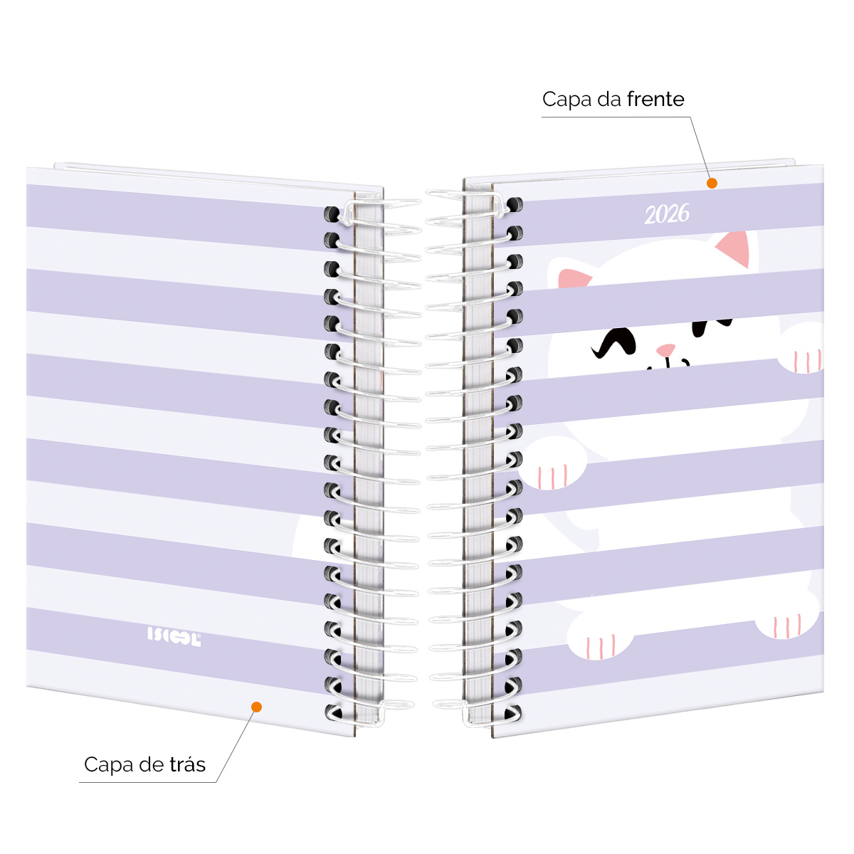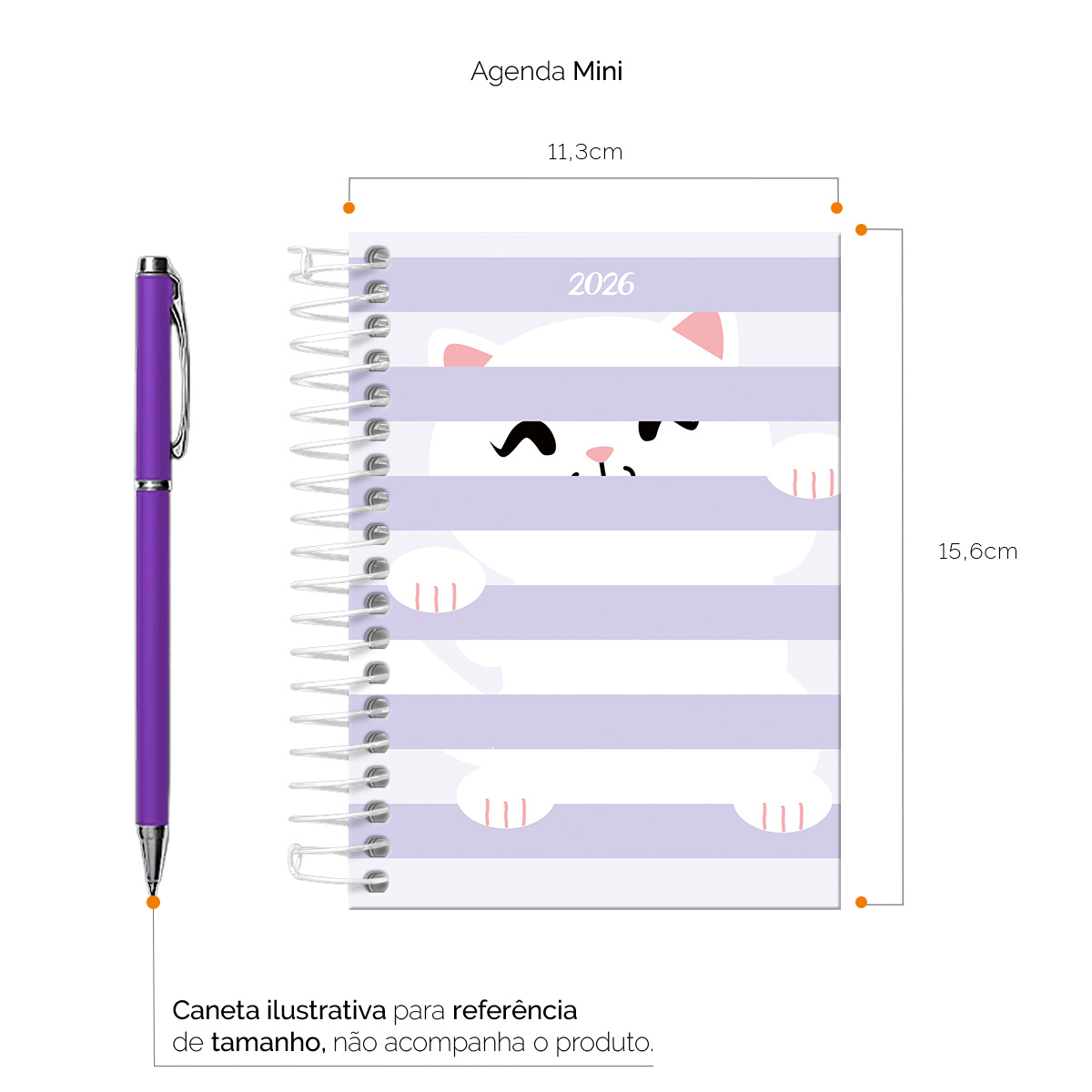 Agenda Mini 2026 Listras Lilás Gato Branco