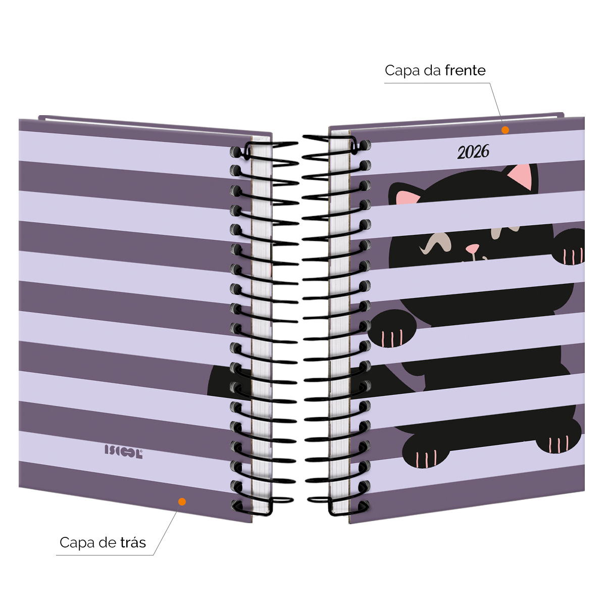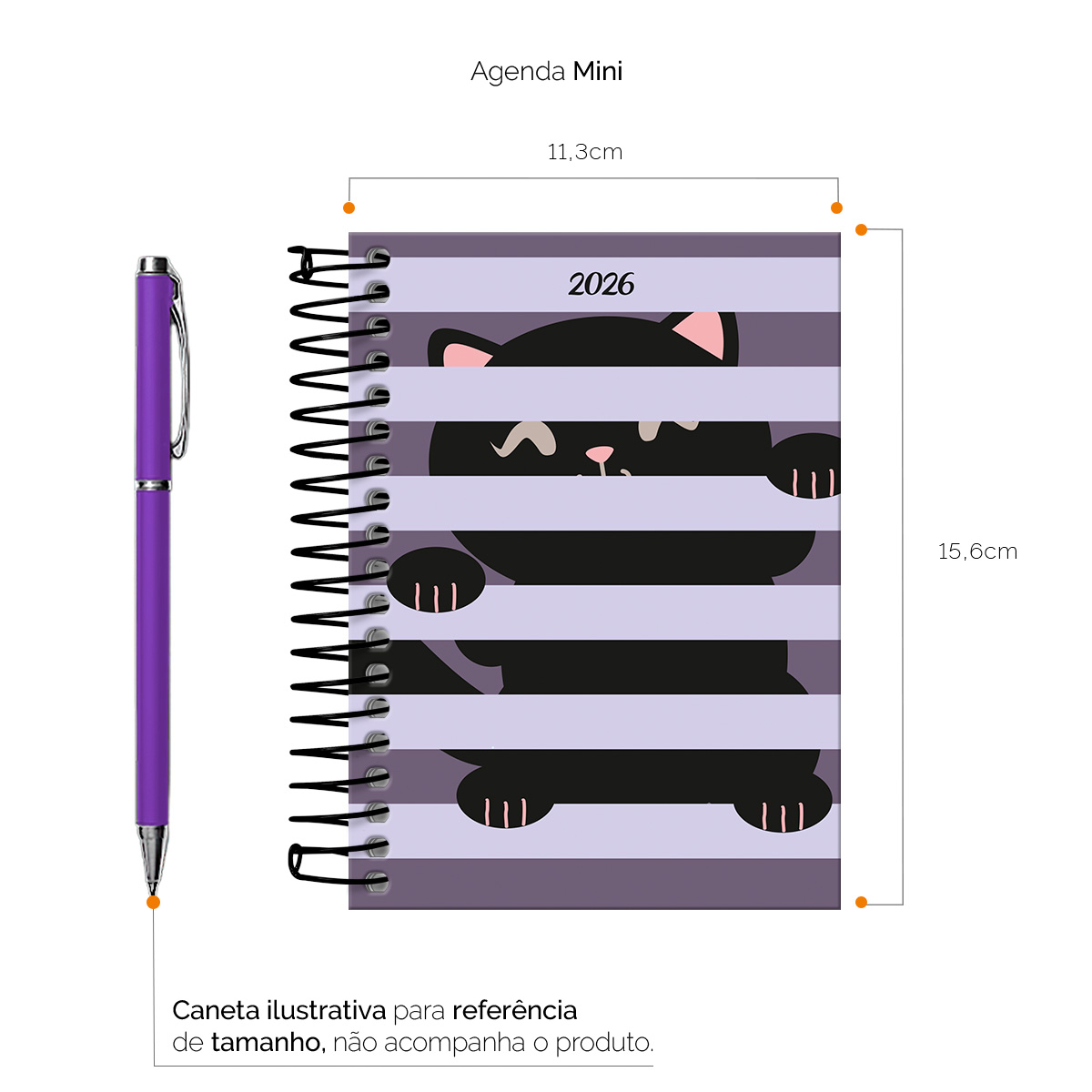 Agenda Mini 2026 Listras Lilás Gato Preto