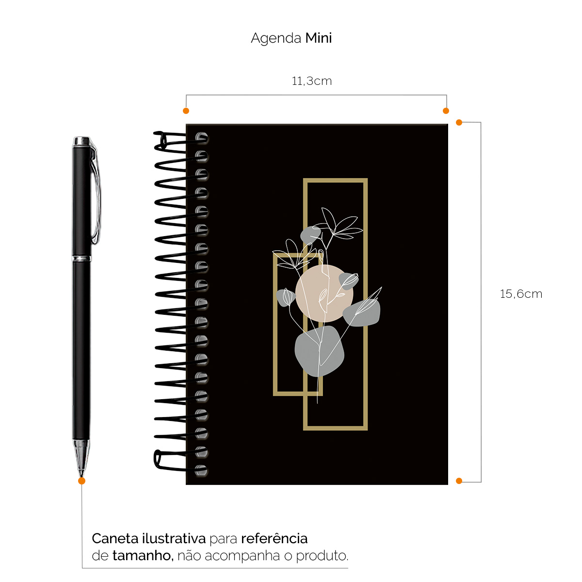 Agenda Mini 2026 Minimalista Gold Mix Preto