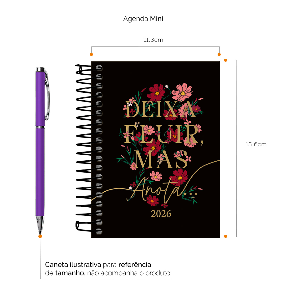 Agenda Mini 2026 Opulence Deixa Fluir Mas Anota Preto