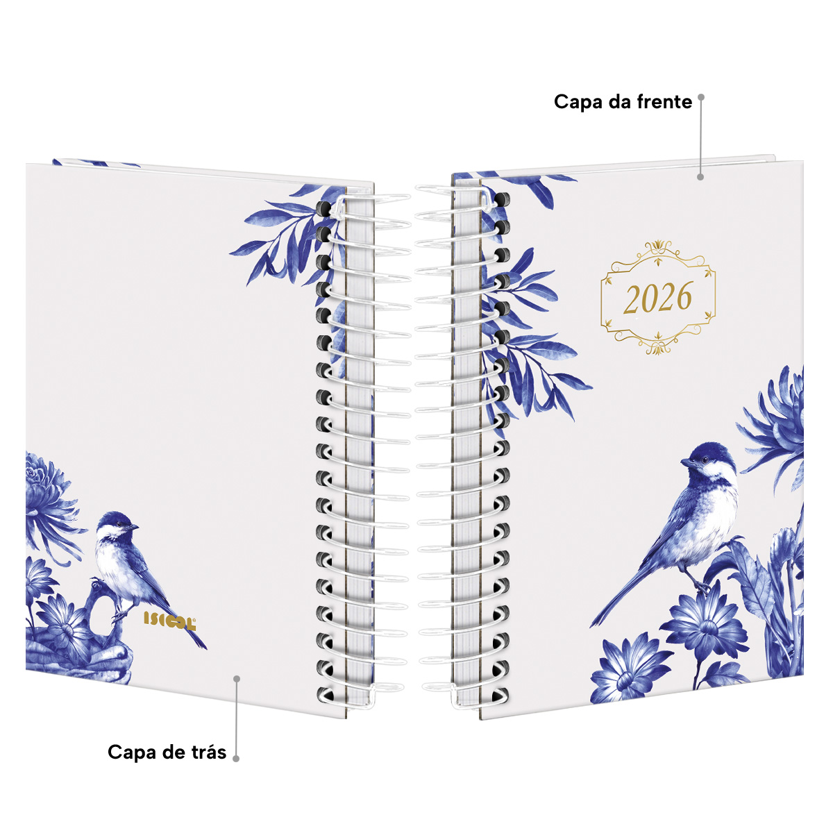 Encadernada com espiral de arame revestido.