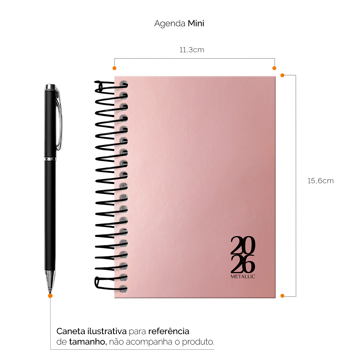 Agenda Mini 2026 Solid Metallic Rose Gold