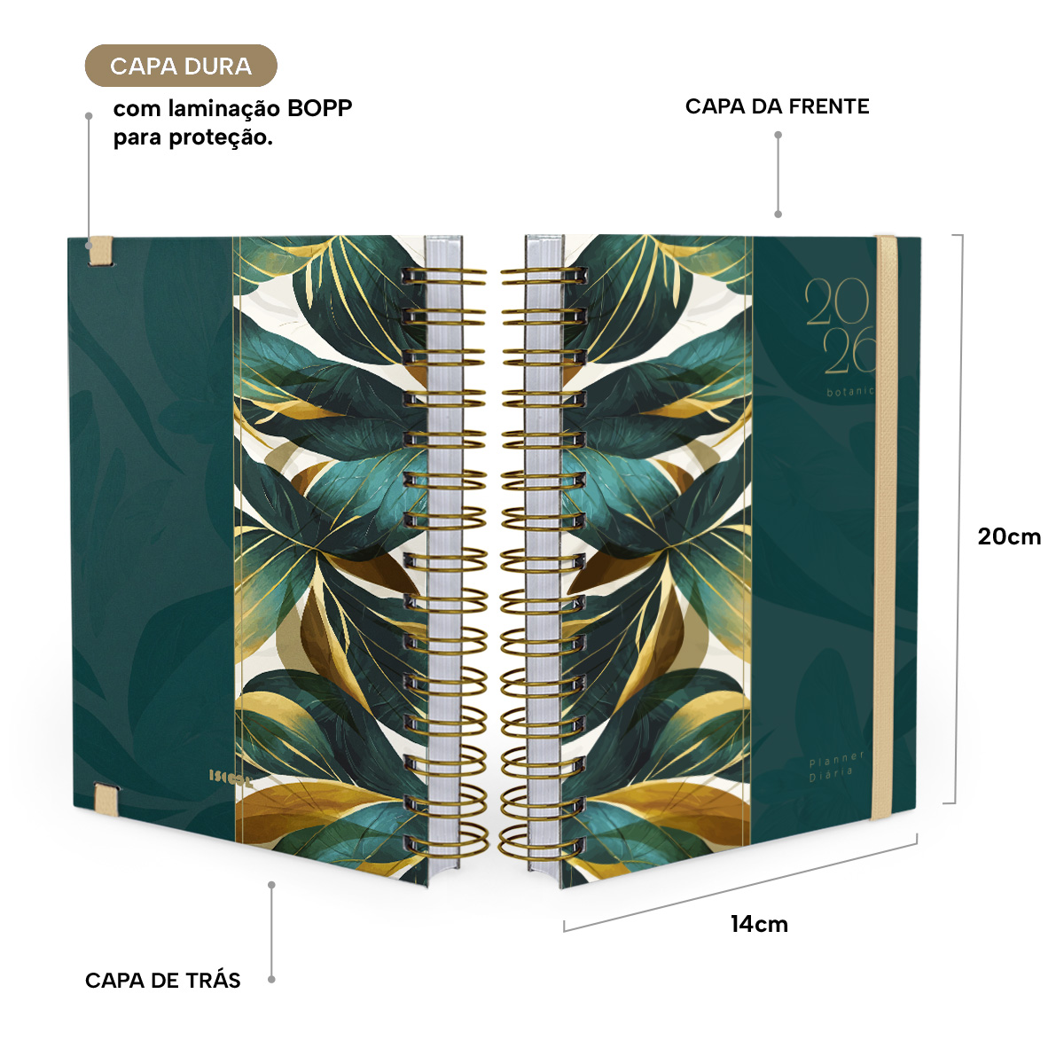 Agenda Planner Diária 2026 Botanics Golden Leaves Luxury