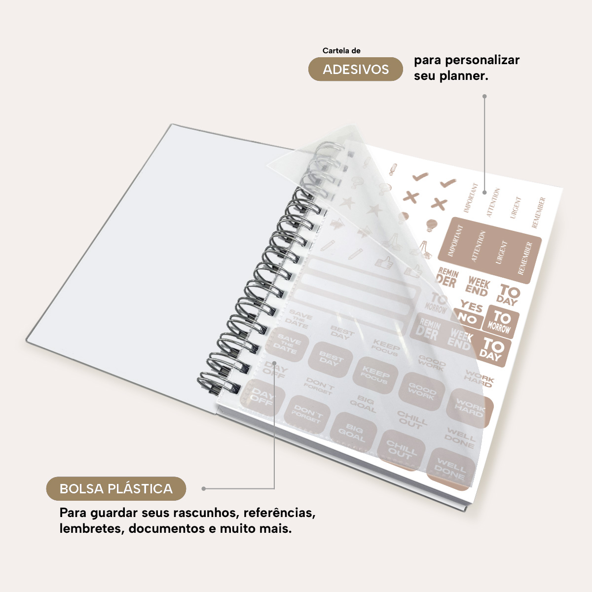 Bolsa plástica para guardar documentos e anotações.