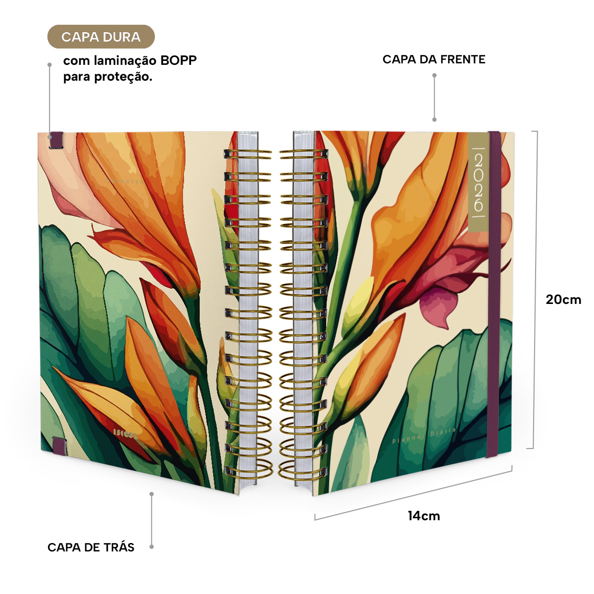 Agenda Planner Diária 2026 Botanics Modern Floral Tropical