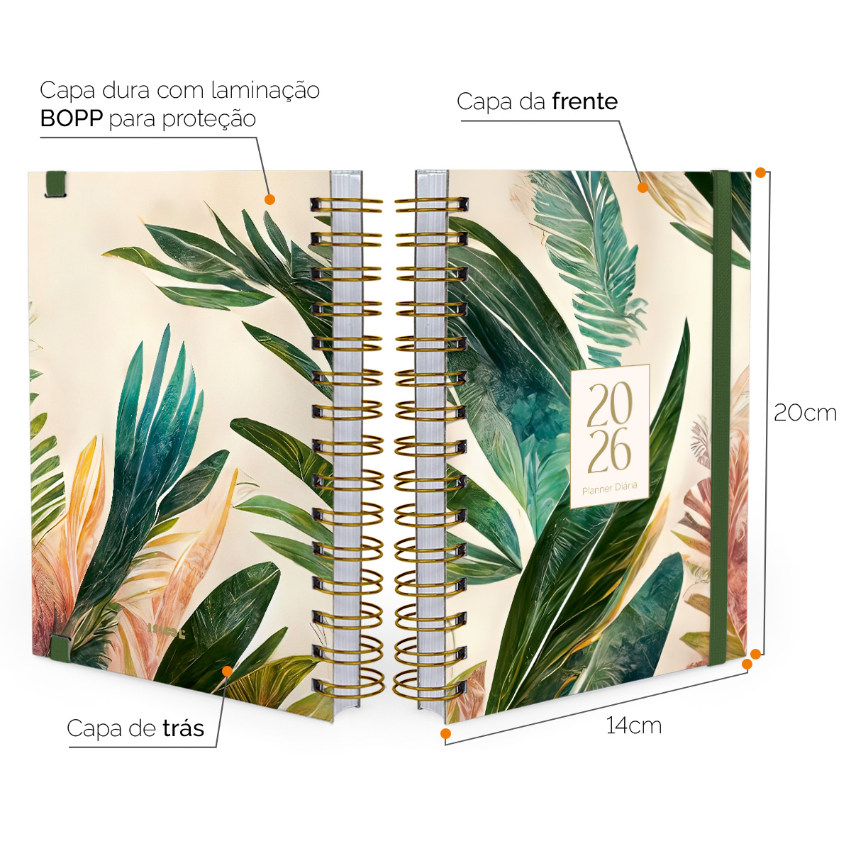 Agenda Planner Diária 2026 Botanics Palm Leaves Musgo