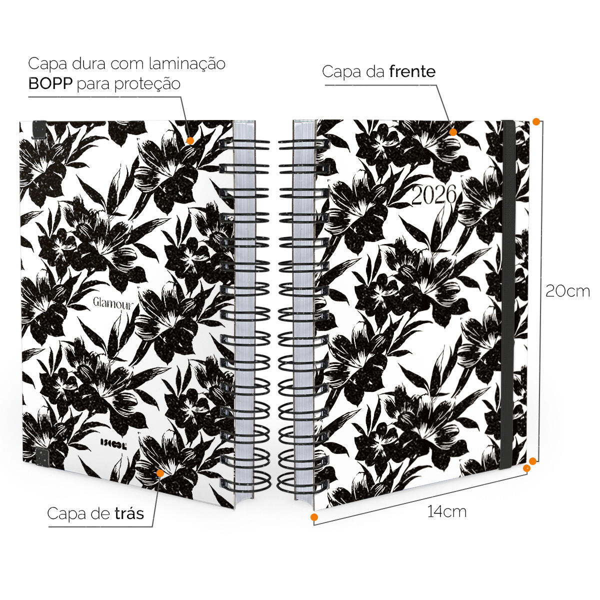Agenda Planner Diária 2026 Glamour PB Hibisco