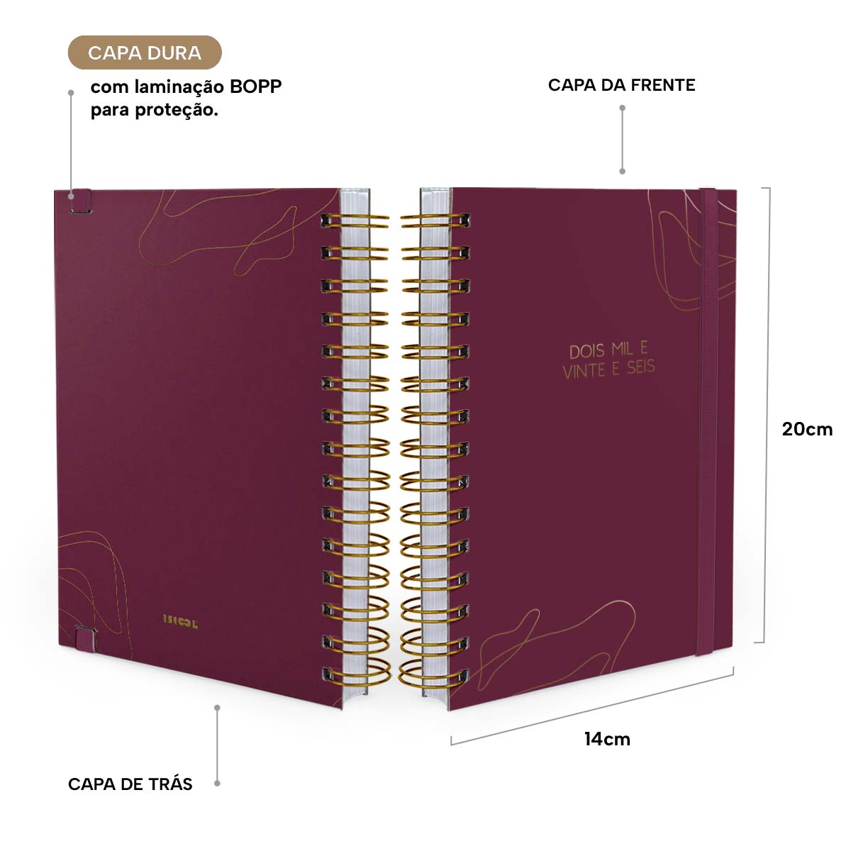 Agenda Planner Diária 2026 Minimalista Linhas Marsala Dourado