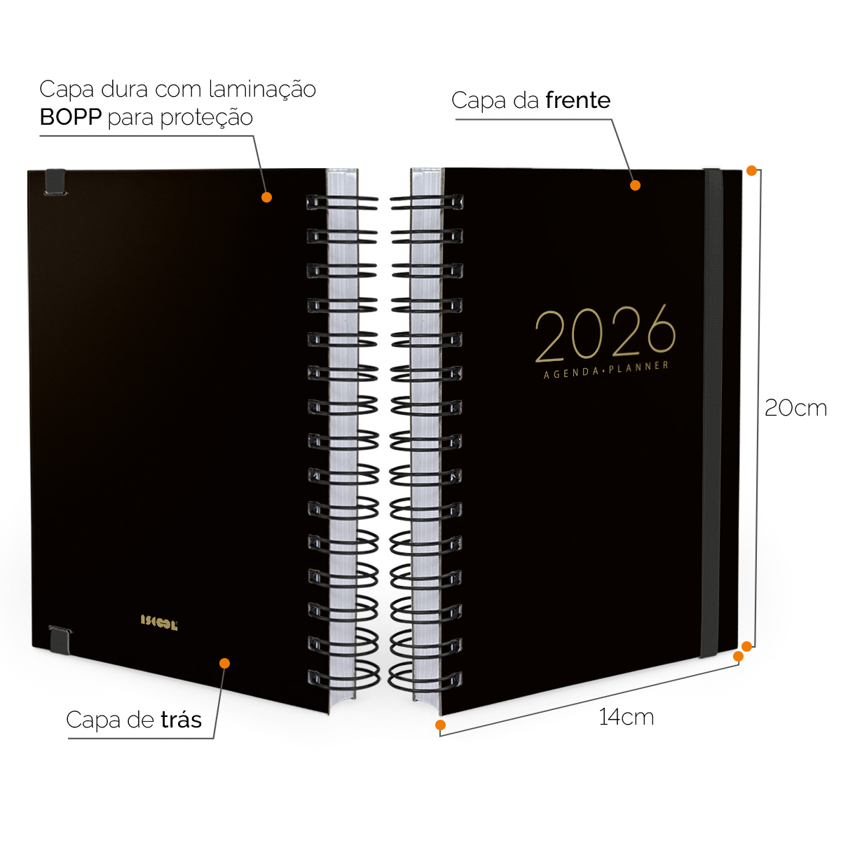 Agenda Planner Diária 2026 Minimalista Preto Fosco