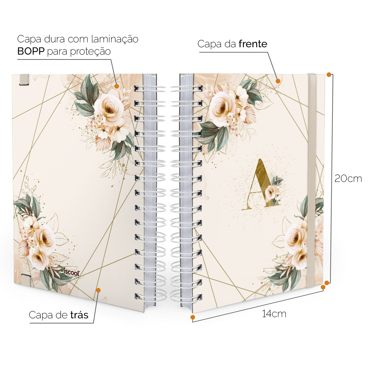 Agenda Planner Diária 2026 Monograma Floral Nude e Dourado