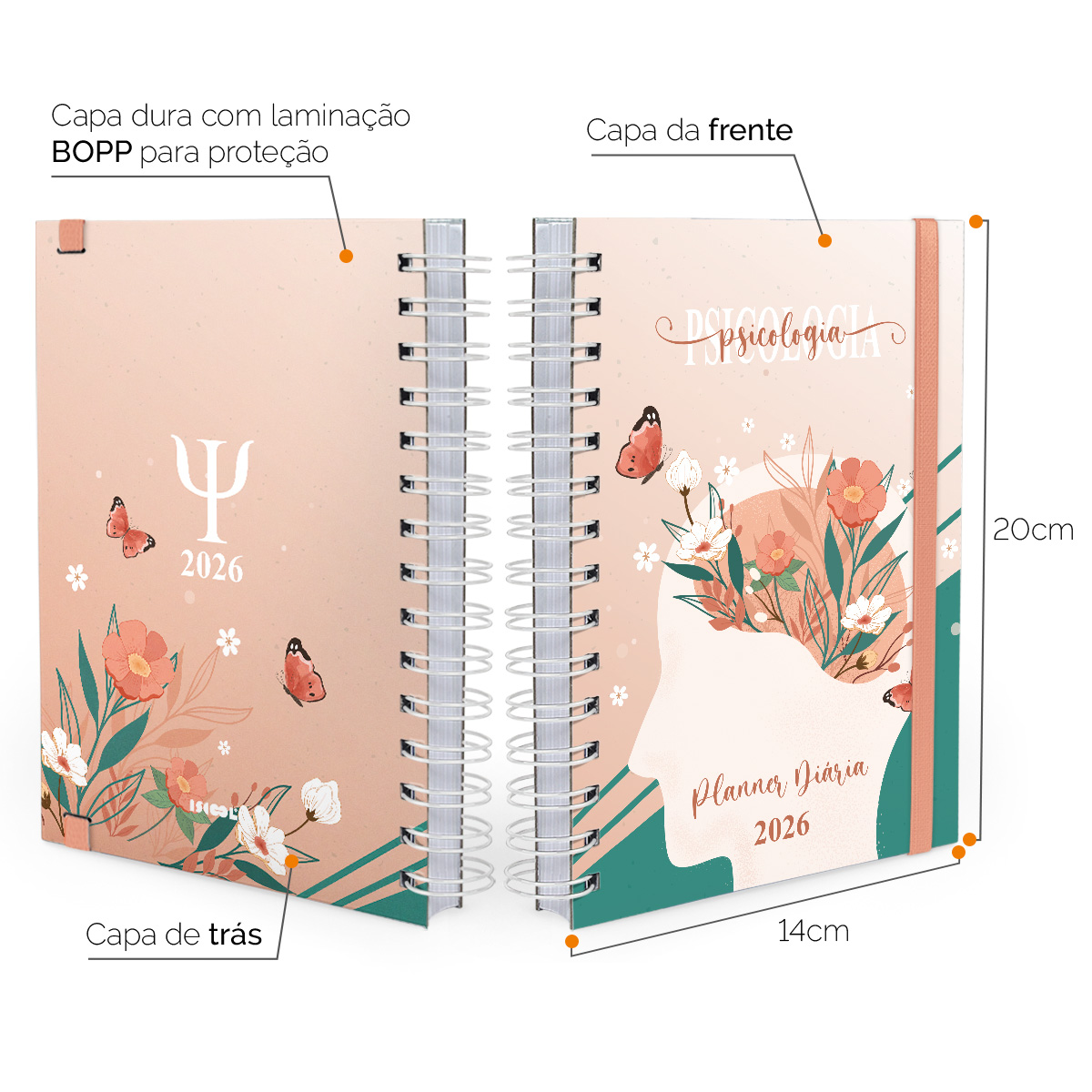 Agenda Planner Diária 2026 Profissões Psicologia Nude