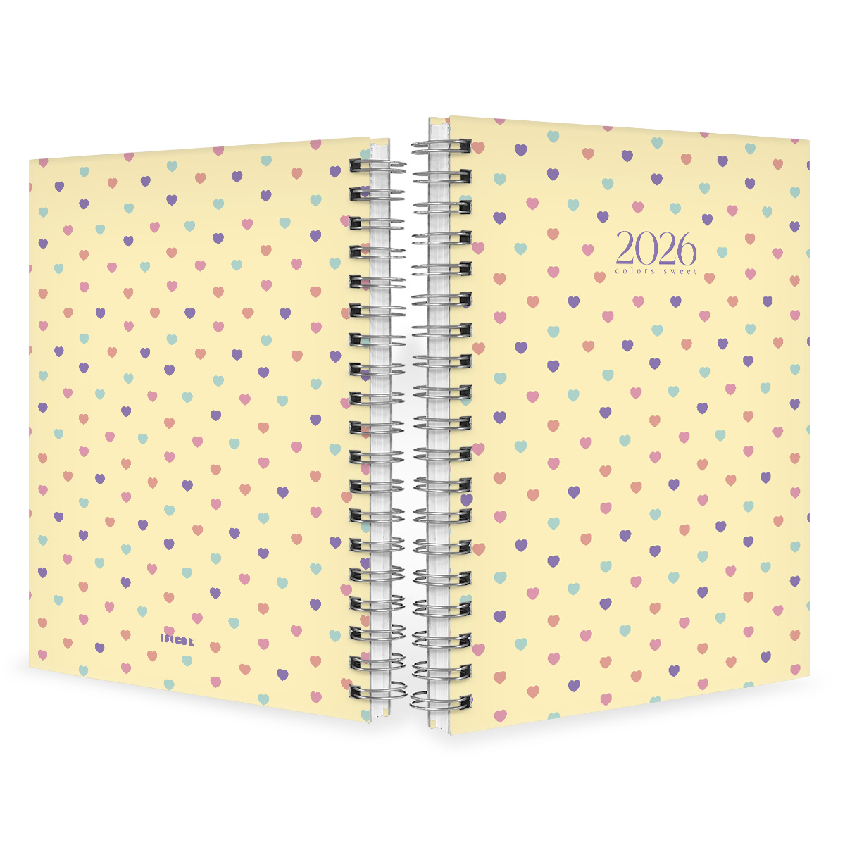 Agenda Planner Semanal 2026 Colors Sweet Corações Amarelo