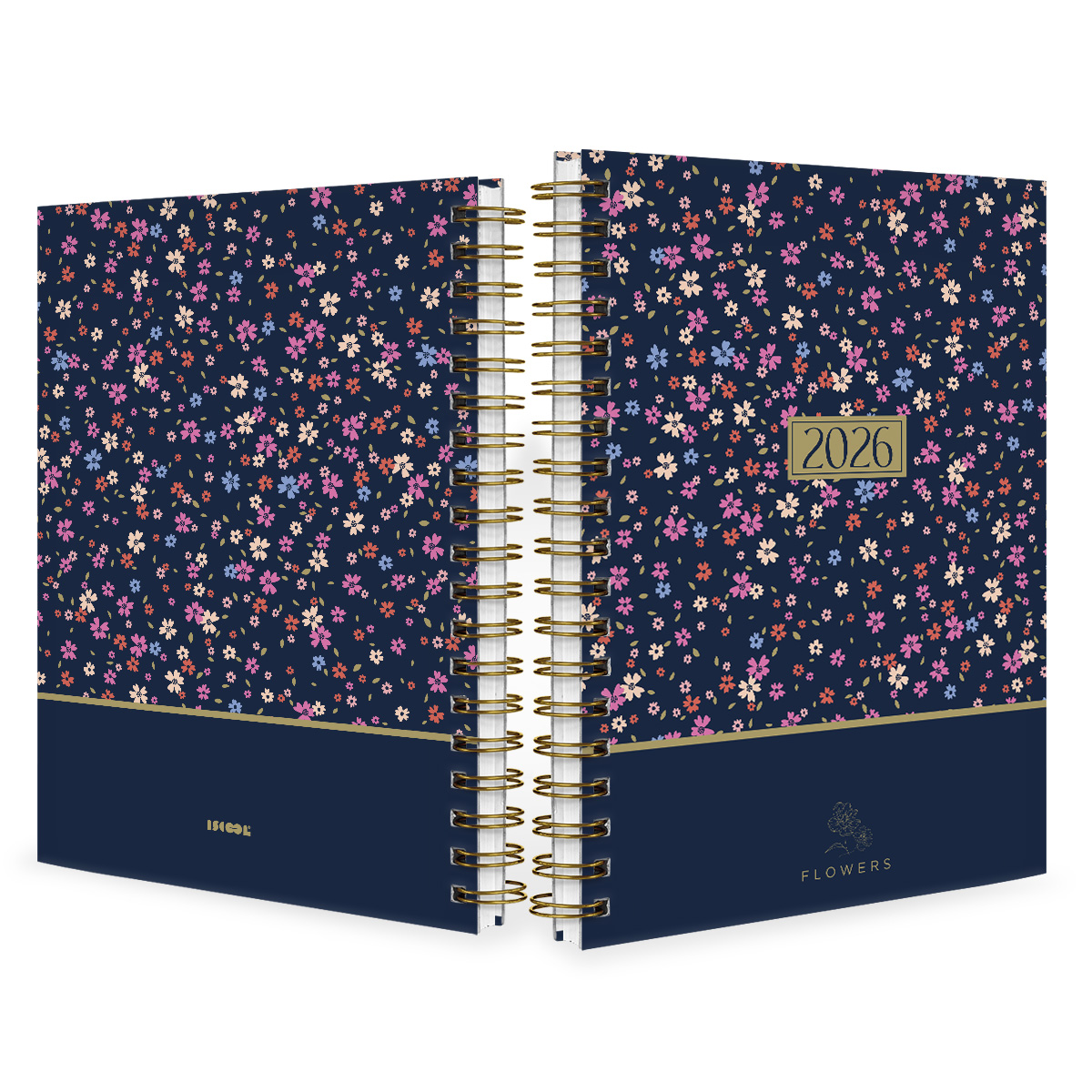 Agenda Planner Semanal 2026 Flower Field Azul Marinho