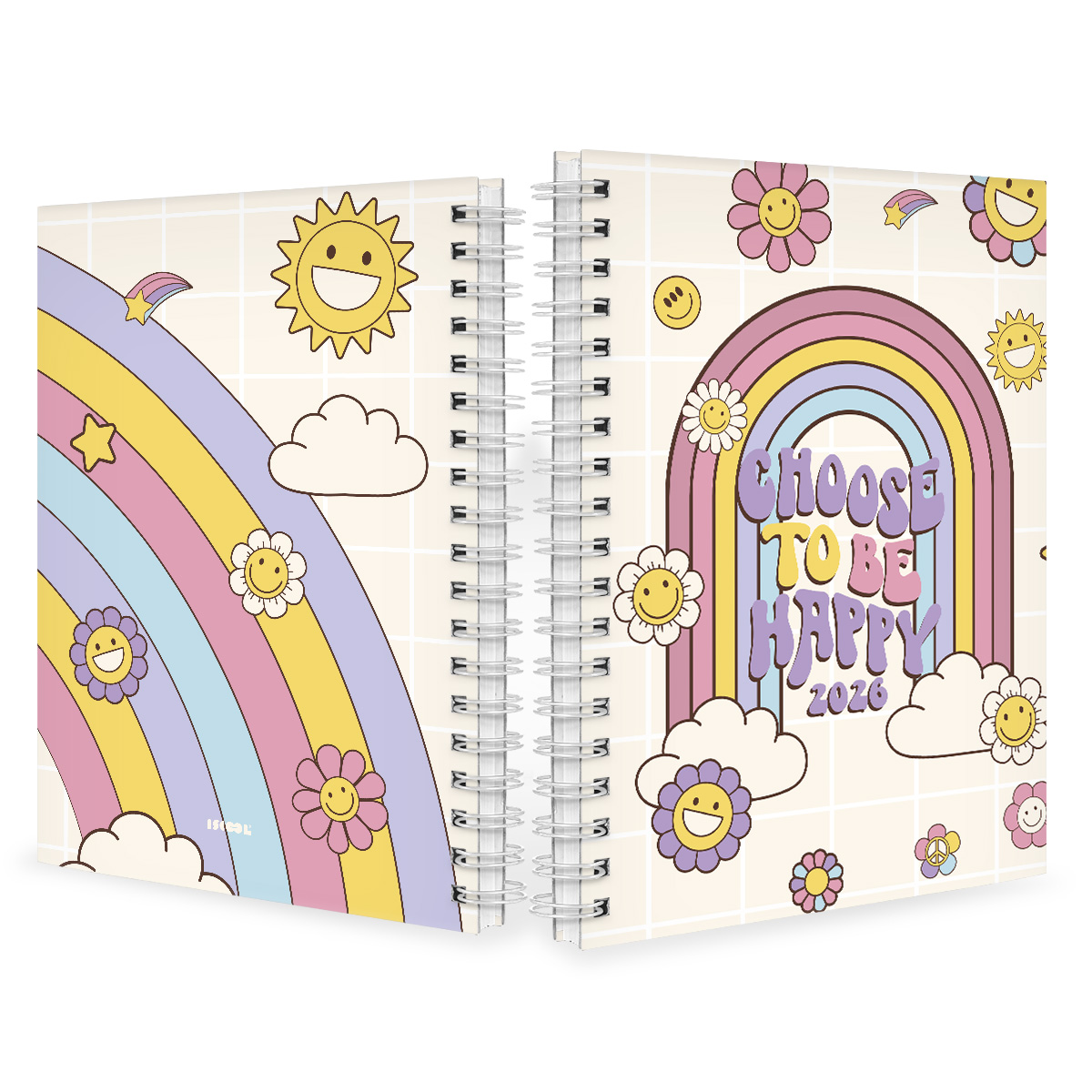 Agenda Planner Semanal 2026 Retrô Arco Iris E Flores