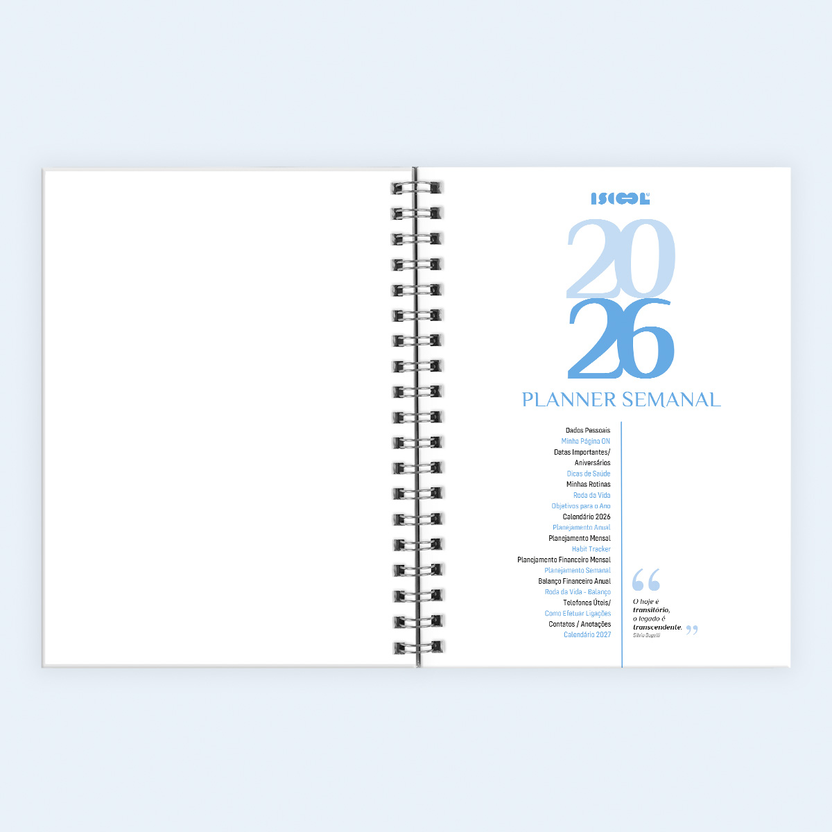 A agenda planner semanal da Iscool é perfeita para uso diário, seja na empresa, escritório, salão, clínica, escola, faculdade ou até mesmo em casa. Com ela, você pode agendar compromissos, eventos, tarefas, lembretes e contatos, tornando sua rotina mais funcional e produtiva.