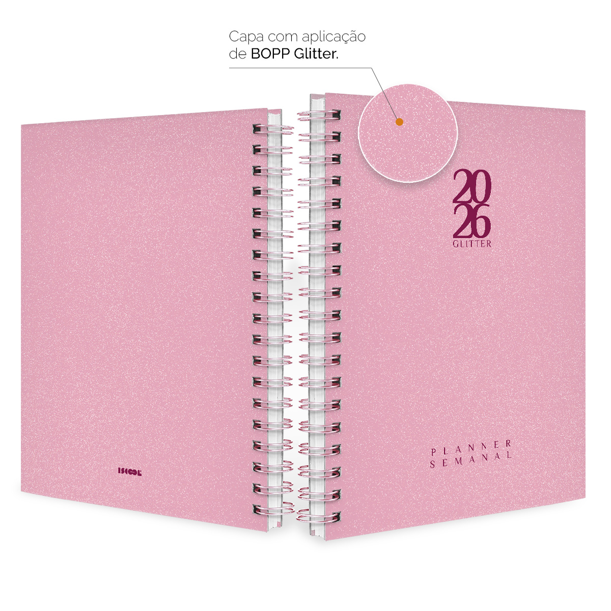 Agenda Planner Semanal 2026 Solid Glitter Cores Rosa E Pink